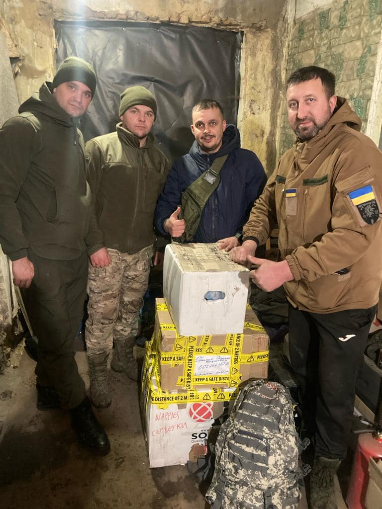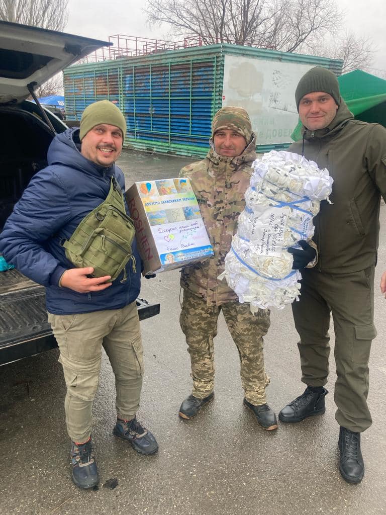Передали персональні посилки, смачні « миколайчики», колеса, шкарпетки, термобілизну, балаклави, вологі серветки, окопні свічки, каву, чай, домашню випічку, печево, вареники, домашню консервацію, хімічні грілки, газові балони, генератор та інші смачні та потрібні речі для передової. Дитячі малюнки та Ваші привітання.