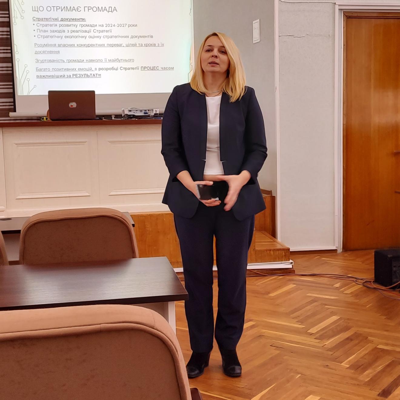 Головно говорили про особливості розробки Стратегії (вплив світових трендів та фактори, на які слід зважати при роботі), про реалізацію стратегії та залучення коштів на розвиток громади.