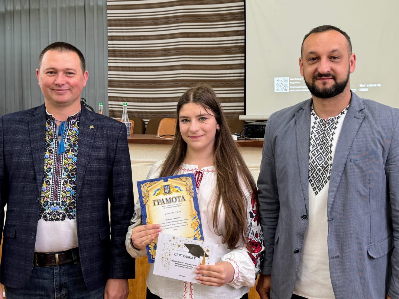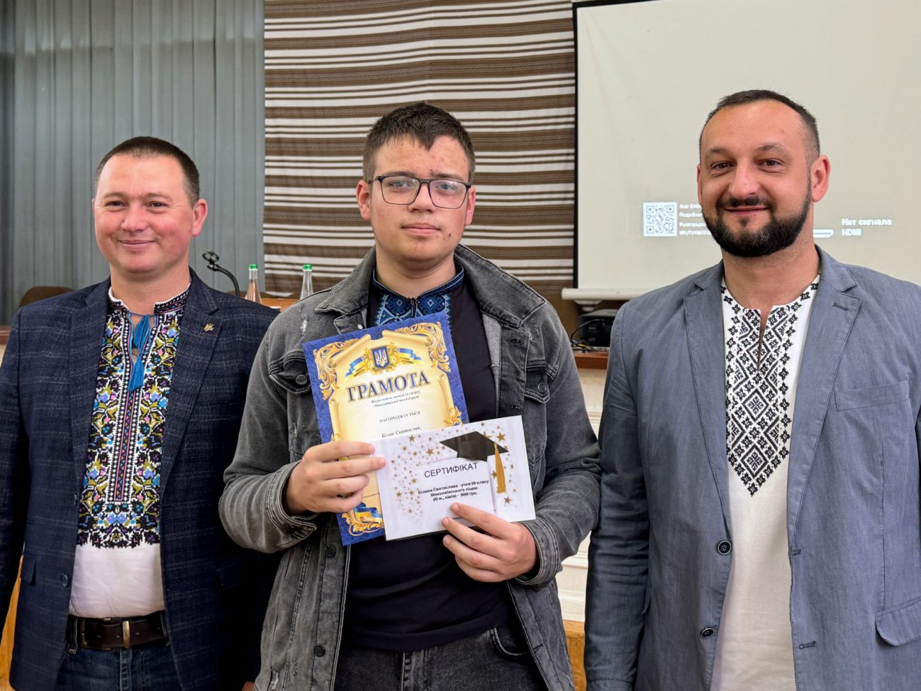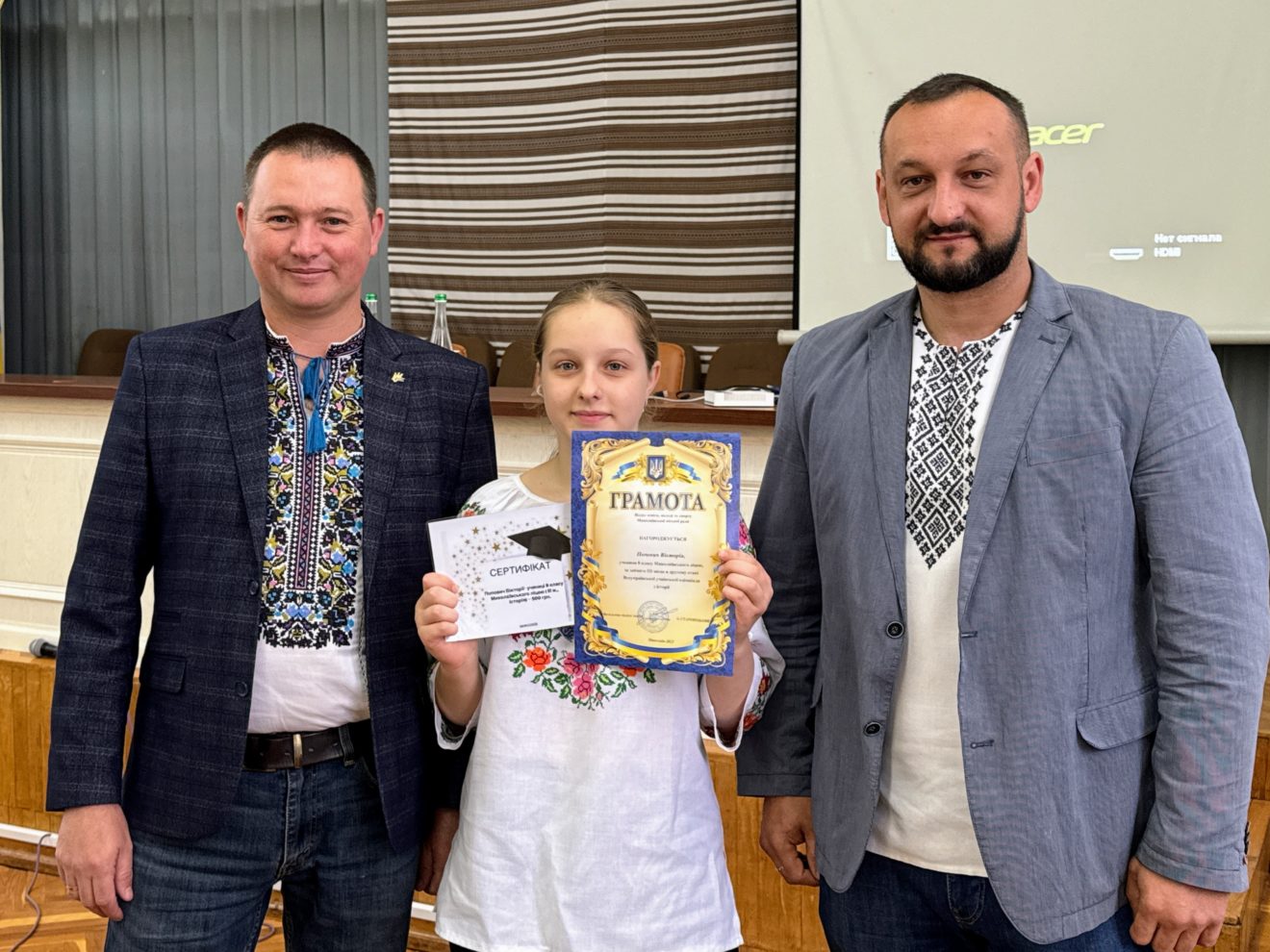 Секретар Миколаївської міської ради Іван Андрійчик та начальник відділу освіти, молоді та спорту Андрій Старовецький привітали дітей-переможців і їх наставників; вручили сертифікати, які підтверджують грошову винагороду за переможні місця, передбачену програмою підтримки обдарованих дітей.