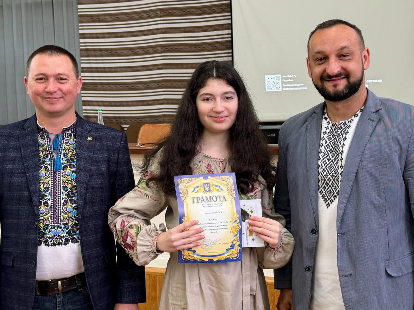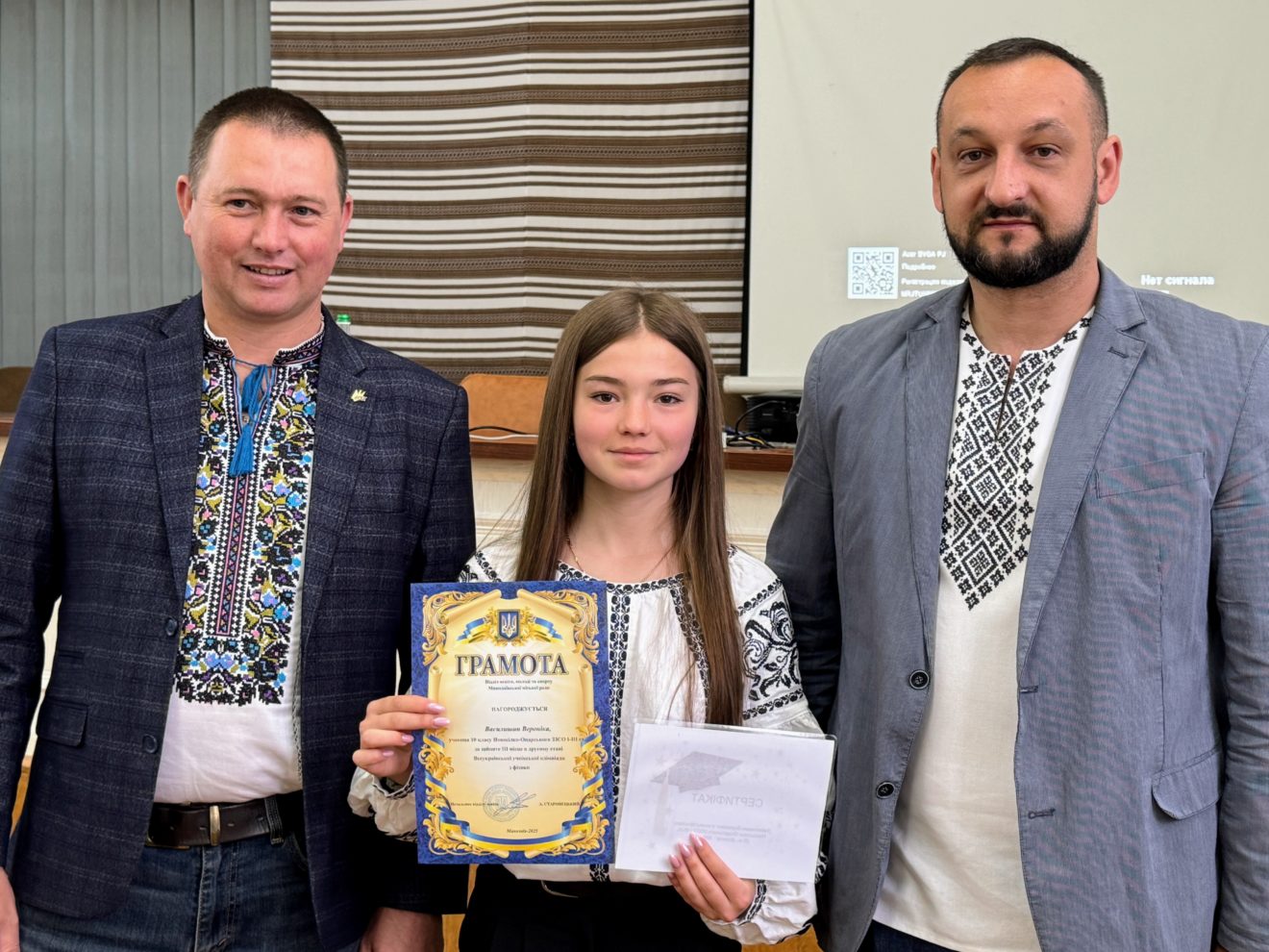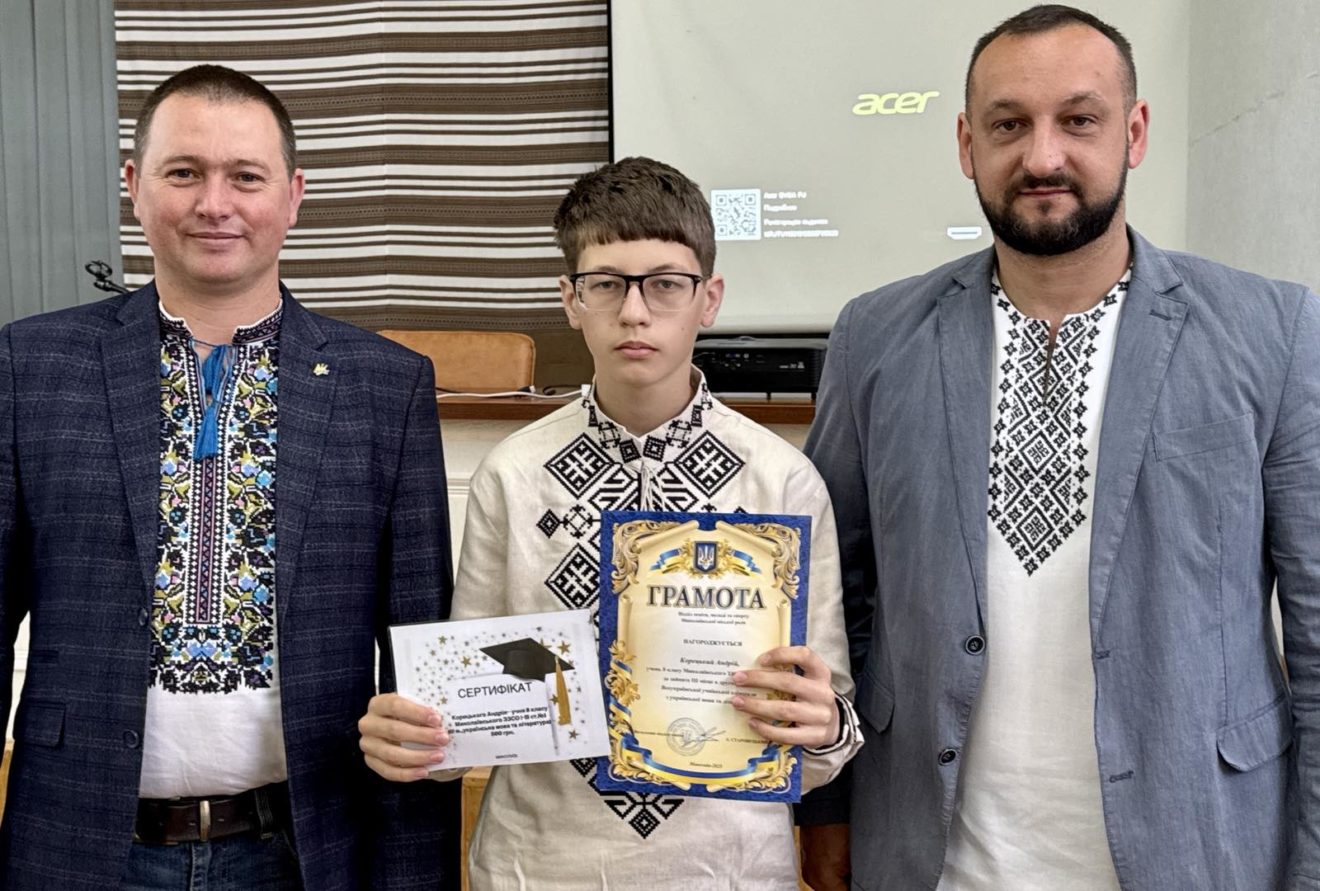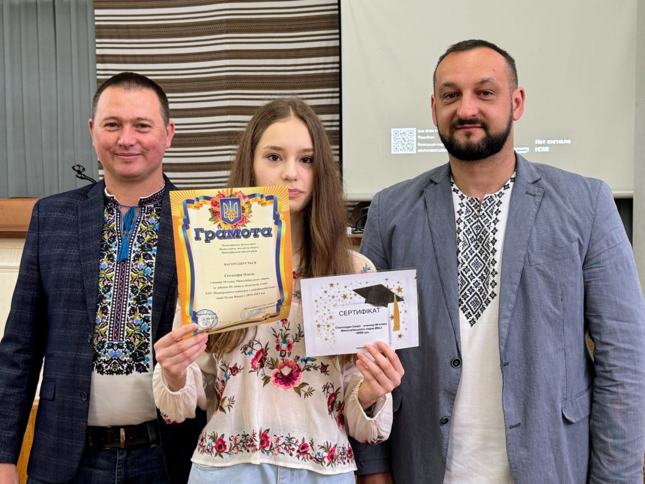Секретар Миколаївської міської ради Іван Андрійчик та начальник відділу освіти, молоді та спорту Андрій Старовецький привітали дітей-переможців і їх наставників; вручили сертифікати, які підтверджують грошову винагороду за переможні місця, передбачену програмою підтримки обдарованих дітей.