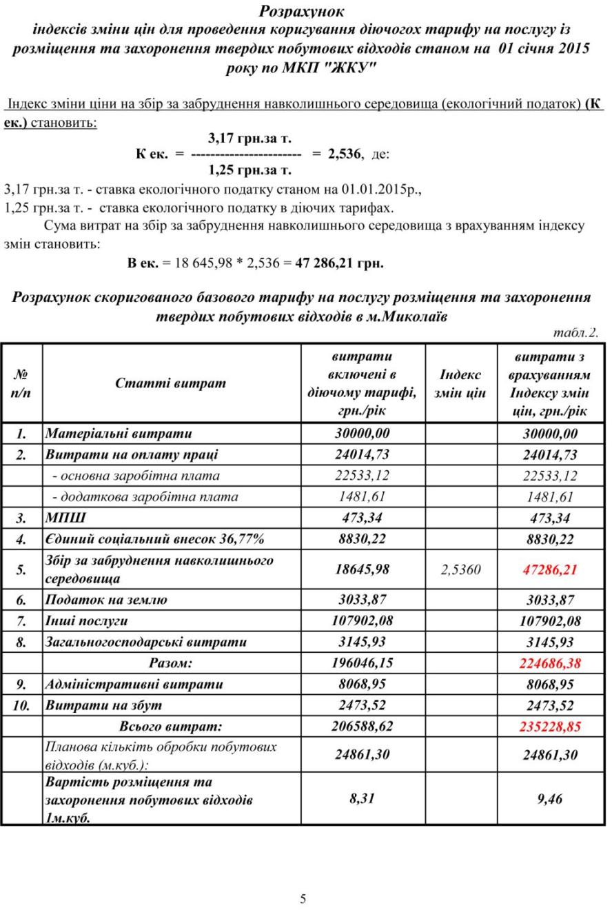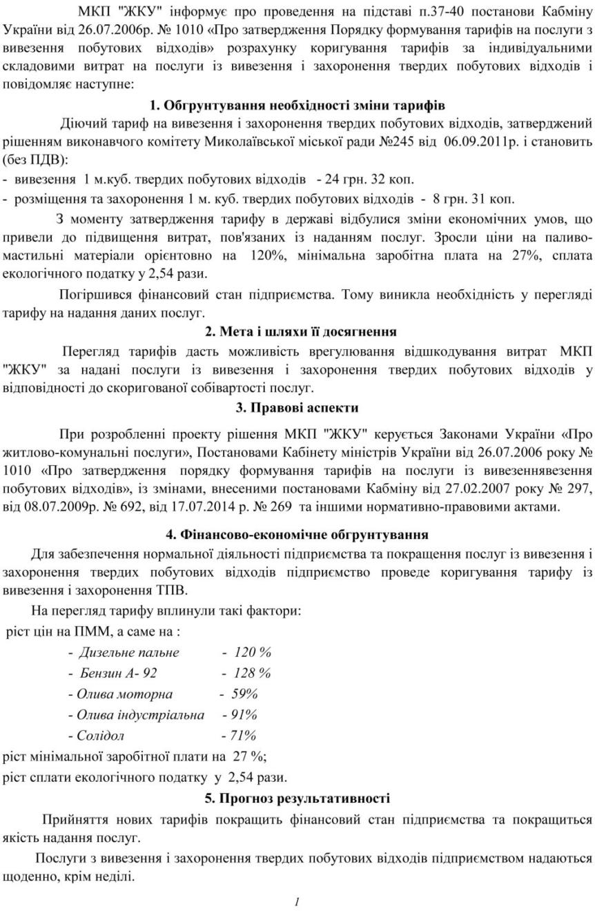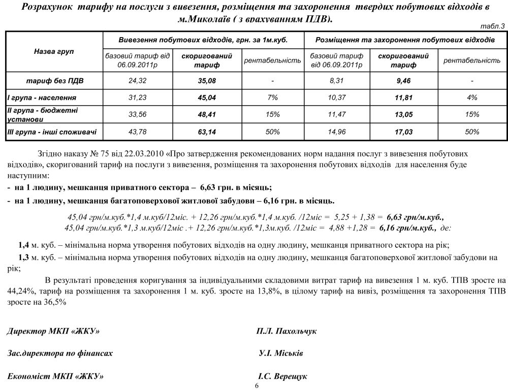 Пропозиція коригування тарифу на вивіз побутових відходів від МКП “ЖКУ” на розгляд громадськості Понеділок, 2 Березня 2015 МКП “ЖКУ” подає на розсуд громадськості коригування тарифу на вивіз, захоронення, розміщення твердих побутових відходів.