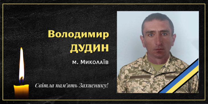На війні проти російських загарбників поліг Захисник України ДУДИН Володимир Михайлович (1981 р.н., із м. Миколаїв).