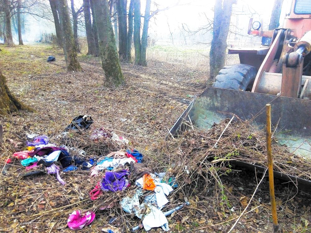 Роботи виконувались в комплексі: очистка тротуару, косіння сухої трави та кущів, згромадження листя та трави, побілка бордюрів, обрізка гілля дерев. І все б нічого, але у купі листя працівники міської ради знайшли подарунки, залишені «гуманітарною», яка приїздить у Миколаїв. Було все: жіноче взуття, «гумовці», вечірні сукні, светри, футболки та інше. Окрім цього разом із МКП «ЖКУ» ліквідували облаштоване місце відпочинку місцевих волоцюг при в’їзді у місто.